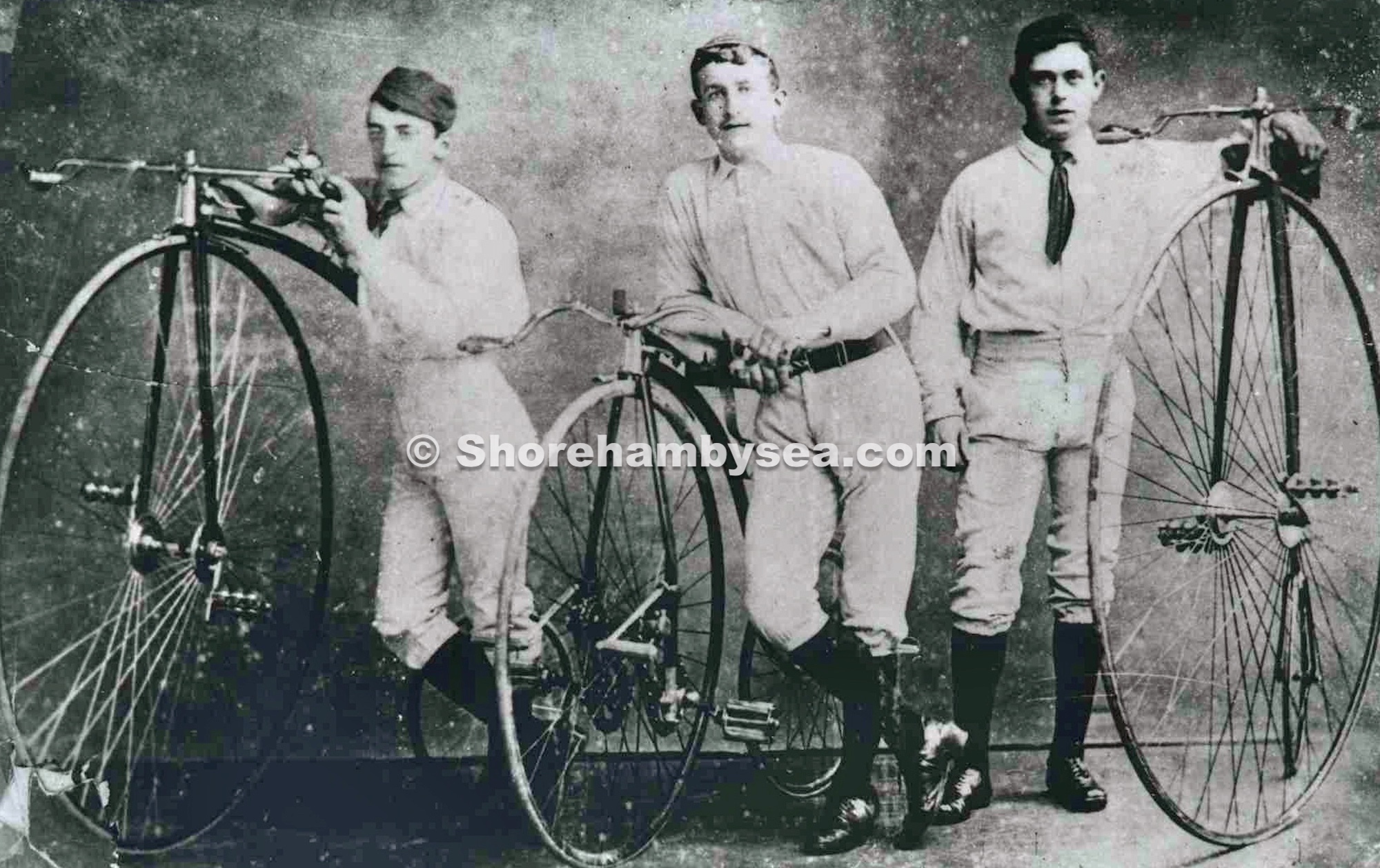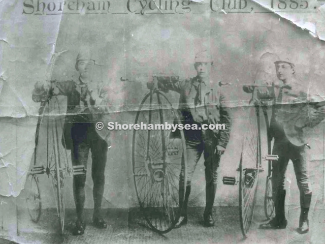 GH4 – G. Farley, Arthur Eade & George Hedgecock in Shoreham Cycling Club photo 1885.