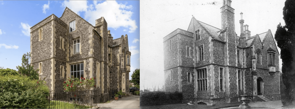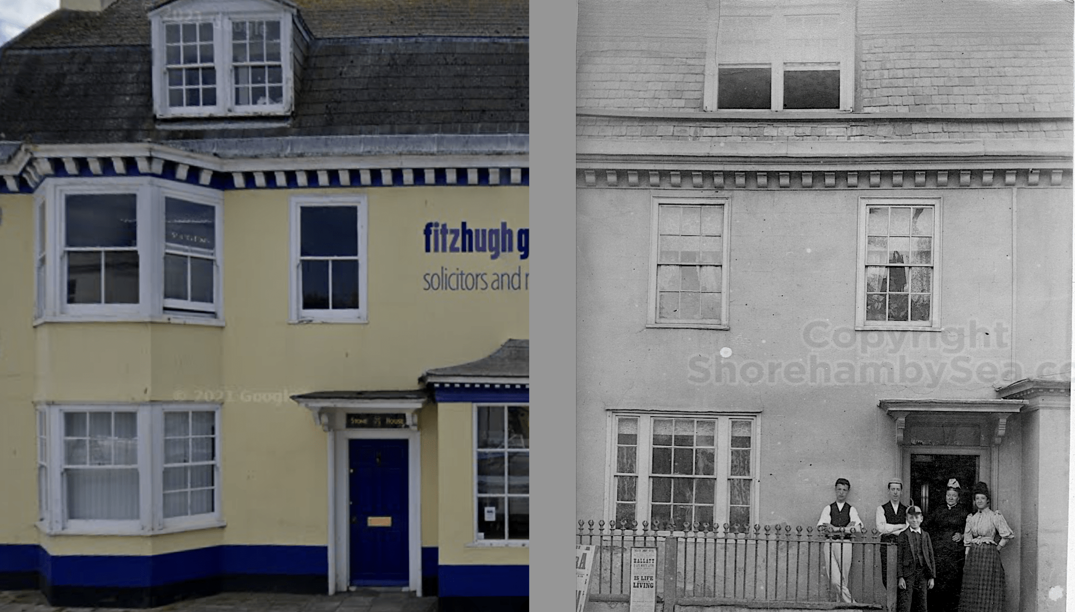 This delightful photograph that is pre-1915 is of the twitten alleyway and gate at the junction of Southdown Road and Mill Lane. The field behind is Oxen Field – often used for town events and sports. The twitten was the route north to Little Buckingham, with a high flint wall on the boundary with the vicarage in Shoreham Court to the east.