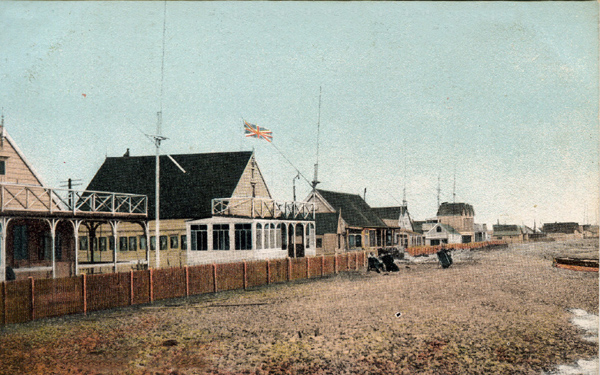 Bungalow Town may not have started to develop fully until the 1920’s but early bungalows were already on the beach in the 1890’s and by 1910 there were over 90. Most were wooden, some only survived a few years, all were susceptible to fire and a good few burnt down but were then promptly replaced. Many were altered in appearance with extensions and as they changed hands the bungalow names were also often changed. Most of the following photos are of similar views between 1900 and 1920 which illustrates the changes that took place in a short space of time. To help identify the whereabouts of different parts of the beach a modern day map and today’s road names are used.