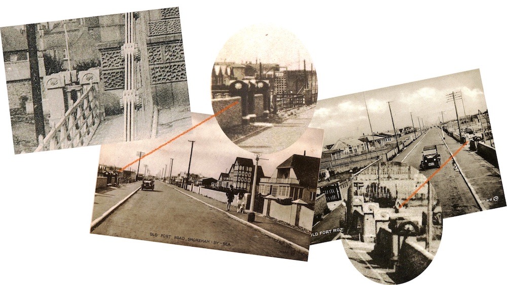 So by 1923 the two-pier suspension bridge had been demolished, new abutments and a new intermediate pier was built. Much of the reclaimed stone was re-used in expanding the piers. The 2 Coade stone statues of lion and horse were winched down and erected at Arundel Castle. A few parts of the original suspension bridge still exist. The massive chain ends are still underground within the abutment at the North end. Some of the pillars from the bridge walkways turned up in various front gardens of homes on Old Fort Road. There is rumour that the rods from the suspension struts were used to build the fences to the approach road from Lancing – but those rods predate the 1920’s.