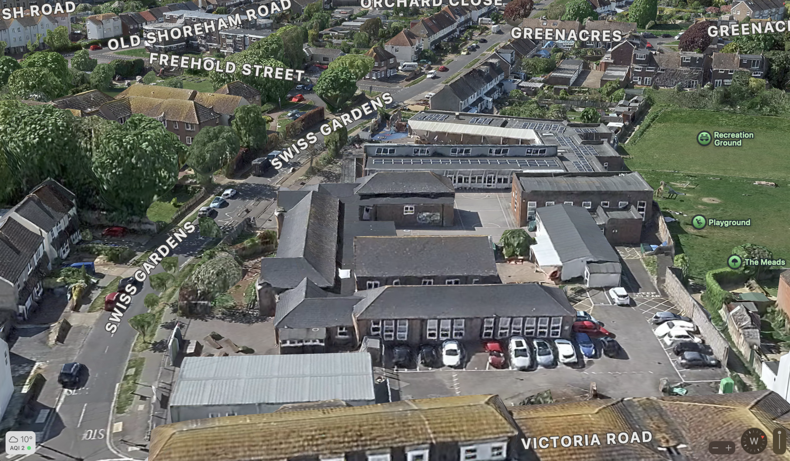 If you look closely there are a few clues to the former use of the Swiss Gardens School site – the Swiss Gardens pleasure garden (1838 – 1910). The Lake is the most obvious, to the South of Swiss Gardens road in the grounds of the Swiss Cottage pub. Hidden in the gardens of Homehaven Court is the remaining wall of the grand theatre.