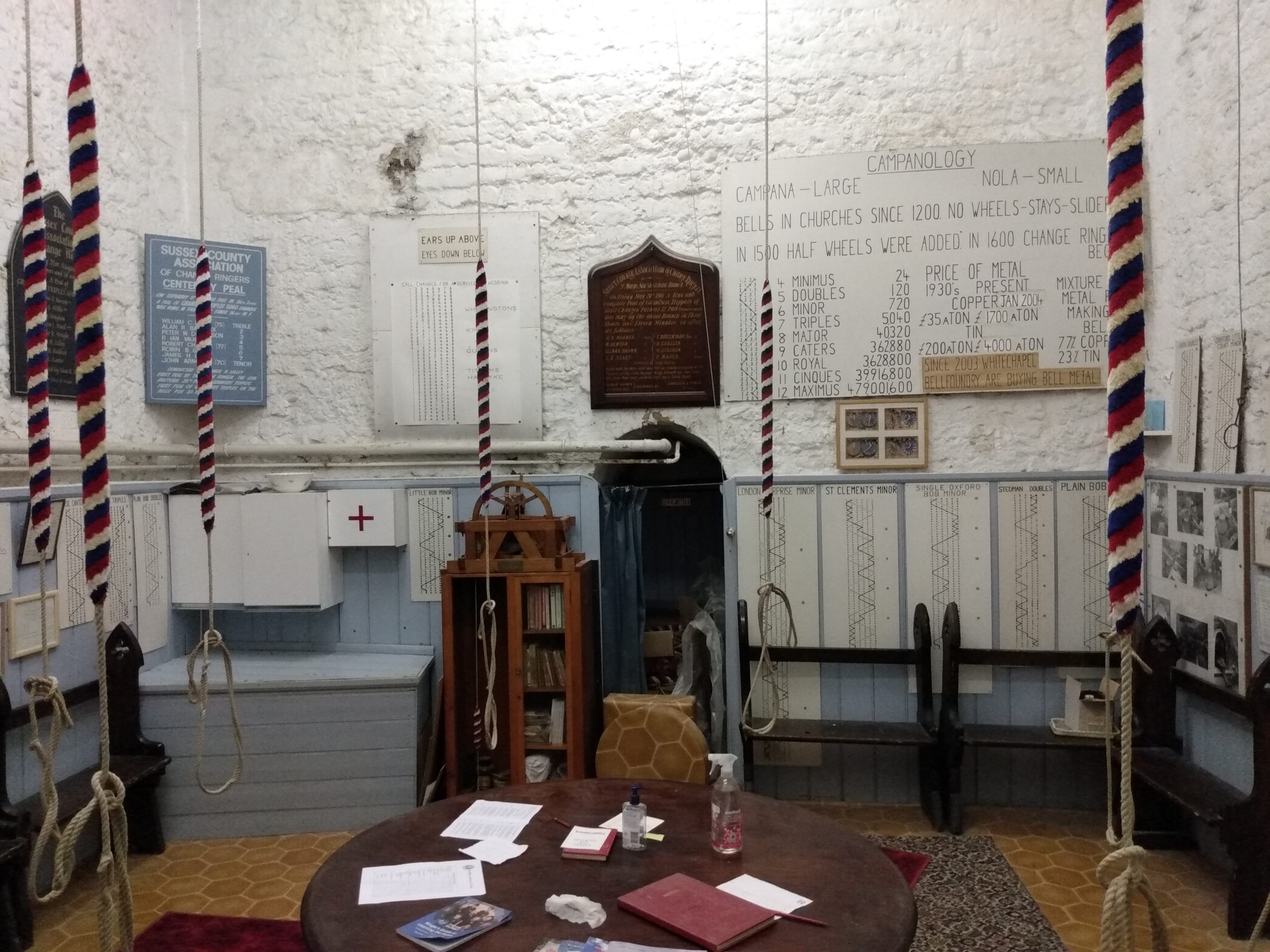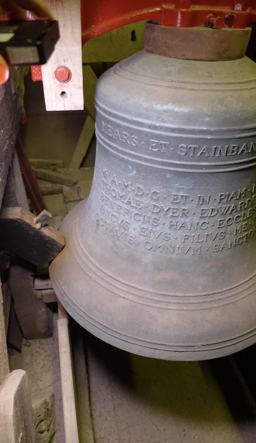 Shoreham’s church of St Mary De Haura has been a landmark for many centuries. For over 250 years the bells suspended in the tower belfry have been rung from the Ringing Room many feet below. The belfry, the ringing room, the clock movement and the tower roof are only accessible via a very narrow spiral staircase in the North East corner of the tower.