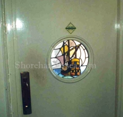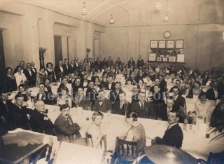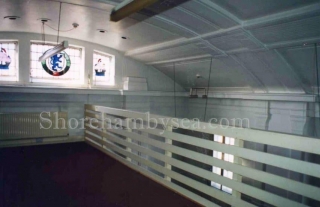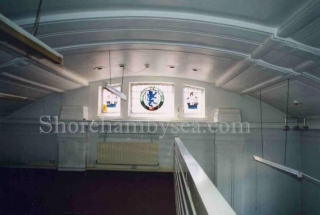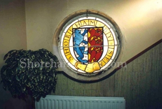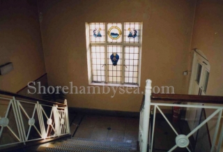 Various internal images of the 1920’s stained glass windows. The last three photos show the main function room as it is now split into two with an upper floor followed by the Fire Brigade Dinner circa 1930 showing the room as it was originally. (Photo Sussex Archaeological Society Collection PP SHORM 95 2686 2)