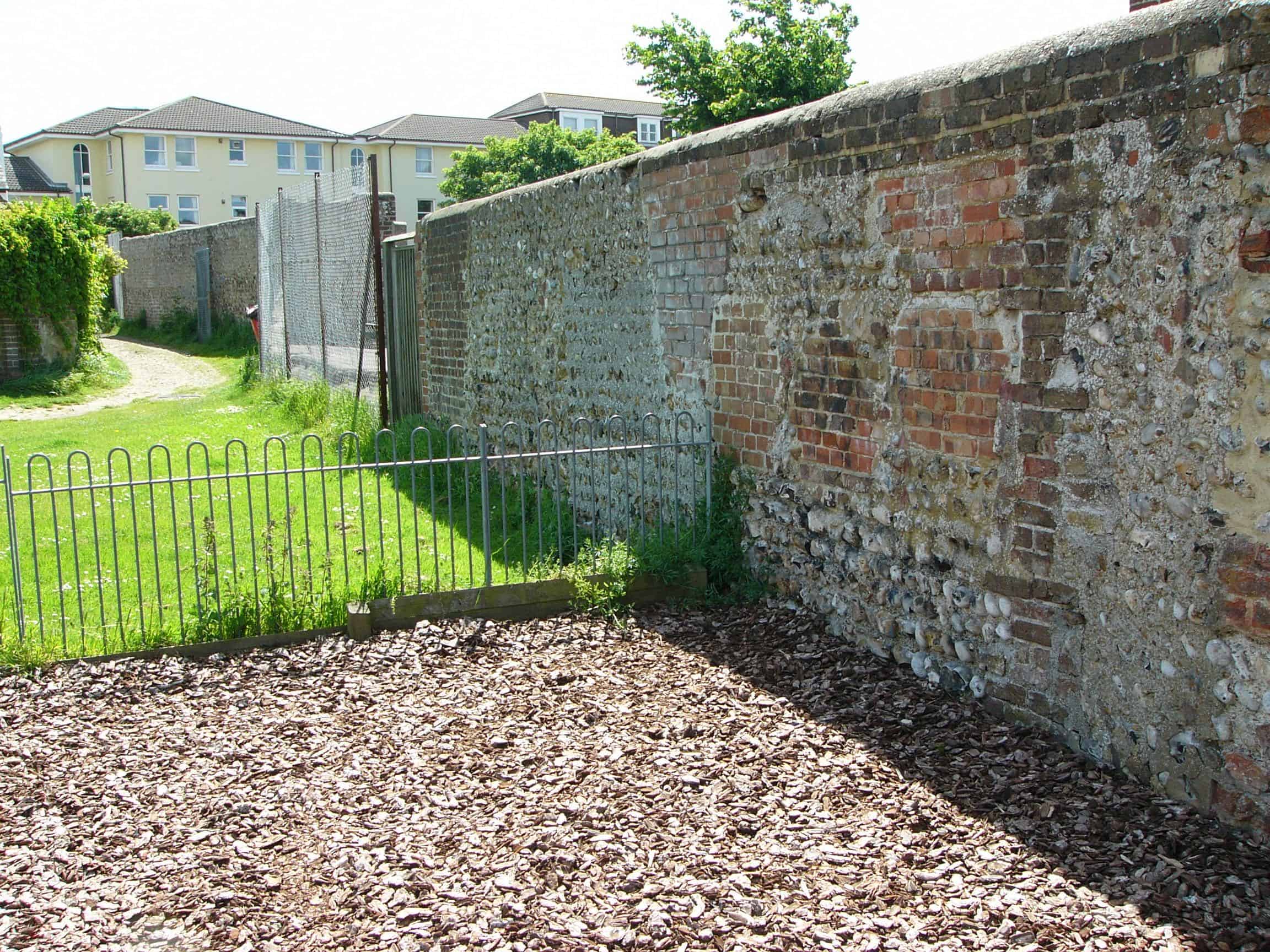The tall boundary wall to the North between the school and the Meads, looks to be the original wall of 1838. This had an undulating top and a kink in its alignment (until part of it was pushed down in the 1990’s) . If you refer to the the poster illustration of 1875 it suggests this 12 – 15 foot wall was the back wall to a theatre-style open stage (to the right in the poster below). There were cart sheds / stables that are evident in early photos of the school. The cart shed in the Meads lasted until the 1990’s and whilst the boundary wall has been repaired many times it is possibly that is the only visible 1830’s structure left.